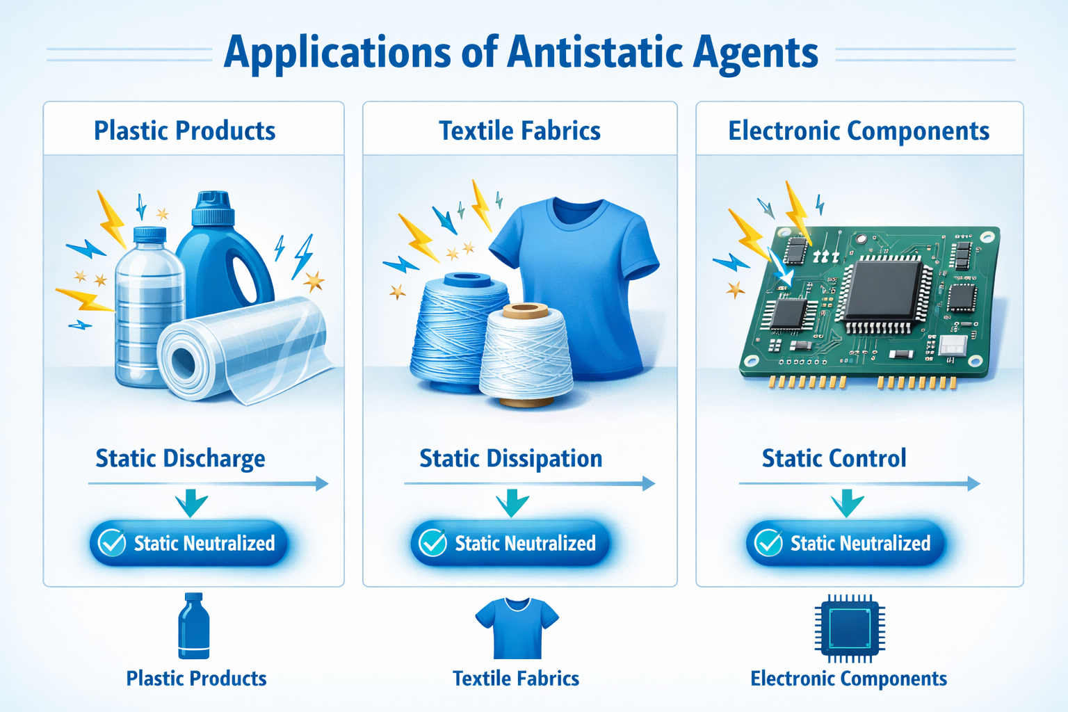 Agenții antistatici sunt compuși chimici menționați să reducă sau să elimine acumularea de electricitate statică pe suprafața materialelor. În aplicațiile industriale, încărcarea statică poate duce la atragerea prafului, lipirea materialului, generarea de scântei sau chiar defecțiunea componentelor electronice. Agenții antistatici funcționează fie prin creșterea conductivității suprafeței, fie prin atragerea umidității pentru a disipa sarcinile, făcându-le esențiale pentru materiale plastice, textile și electronice.